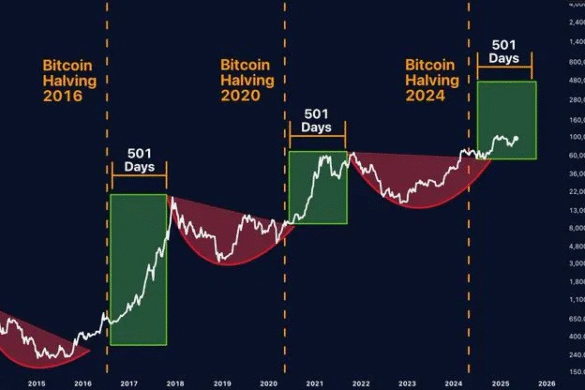 블록 840,000에서 보상이 3.125 BTC로 줄었다. 반감기 시점 가격은 약 63,971달러였다. 반감 직후에는 수수료 수입이 급등했고, 이후 사이클은 이어져 2025년 8월 약 124,128달러로 새로운 사상 최고가를 기록했다.